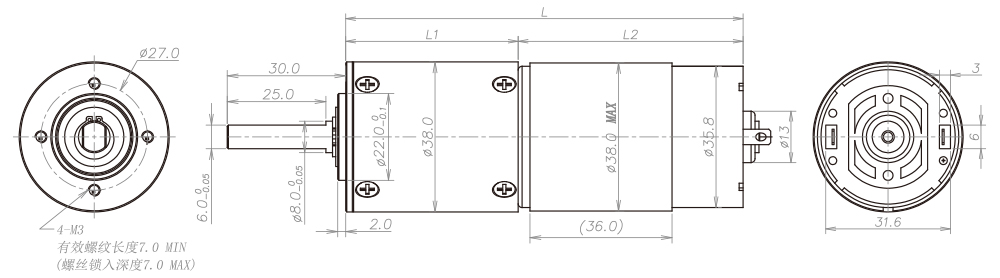 Φ38mm 行星減速箱(MD版)規(guī)格書